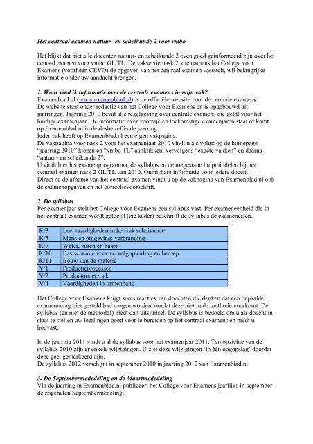Examenprogramma, toegestane hulpmiddelen, opgaven, correctievoorschriften en normeringen;